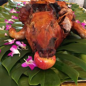 The welcome drink, Mai Tai, could be chosen as alcoholic or non-alcoholic. It was pleasantly sweet and delicious. Next, the whole roasted pig was brought out, which really raised the excitement.