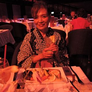 予約のメニューのランク下は、開演前に会場外のテントの下でセルフビュッフェ式の食事となります。ハイレベルなグループは舞台下でテーブルに座ったままの食事です。我々はテントで食べた後に会場内に入りましたが、二階席。食事の後にコンサートが始まります。