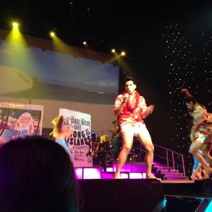 ショーはハワイの歴史から始まり、題名の通りフラとロックの融合?プレスリーは本物のショーのように、そっくりさんが会場を回り握手をしたり、マフラーをプレゼントしたりと会場は大盛り上がりでした。
