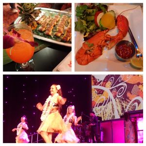 私たちはディナーアンドショーにしたので、ショーが始まるまでに、ウェルカムドリンクがあり、ステージ真ん前の特設テーブルに誘導されました。たくさん席が空いていたのに、他の予約客とすぐ隣の席にされてしまったのが少し残念でした。もっとゆったりと席を使ってくれたらと思います。テーブルにはすでにロブスター料理が置いてあり、着席してすぐに食べることができました。料理の味は普通でした。ステーキやロブスターで豪華な感じですが、味は普通です。よかったのは、ショーです。料理を食べ終わった頃ショーが始まります。フラダンス、ハワイにまつわる歌、マイケルジャクソンの歌、エルビスプレスリーの歌などを、専属の歌手とダンサーが目の前で披露してくれます。ロックというだけあって、生演奏での演奏も迫力があります。1時間ほどショーを見て、フィナーレとなりました。