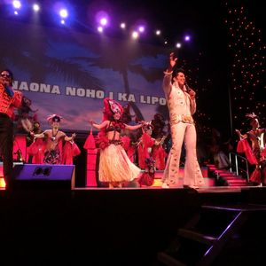 新婚旅行でハワイにいきました。一風変わったフラダンスショーが見れると話題の当該ツアーに参加。最初のバックヤードの案内では、プレスリーのそっくりさんが出迎えてくれてるサプライズ。本人ではないですが、思わずスターに会った気分でした。