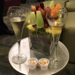 We then met Katy Perry (very hot) in the Green Room for champagne and snacks prior to the mean. It was a large First Class room where we spoke to other guests and relaxed with drinks before dinner.