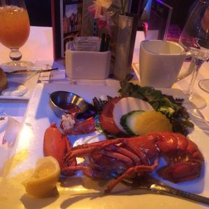 We then proceeded to have dinner and wine right in front of the stage. The lobster and steak dinner was super. Again wonderful service.