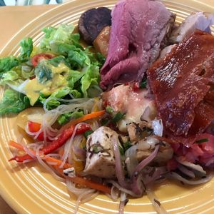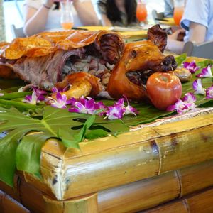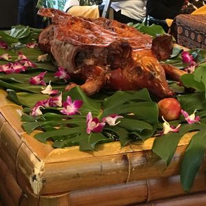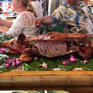 At the Terrace Luau, there was a whole roasted pig, and all the Hawaiian dishes were delicious.