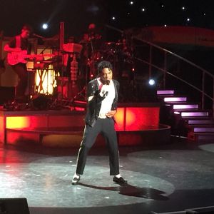 I saw it for the first time, and I really enjoyed it. Elvis and Michael... their voices and dancing were quite similar. On the day, there was an accident where water fell from the ceiling.