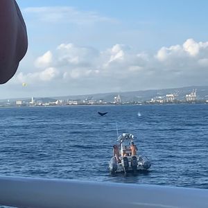 The conditions were windy with high waves, so it felt like an experience similar to Splash Mountain... I was able to see the whale's spray and tail, and on the way back, I was also able to see dolphins and honu, which was great. I couldn't take any photos, but the views of Honolulu and the departing airplanes were full of highlights, and the captain's guided announcements were entertaining.