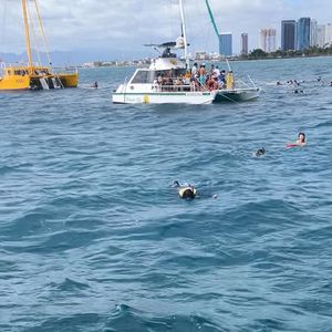 The tour was fun, but the high waves in Waikiki and the simple life jackets that resembled airplane life vests seemed difficult for my 7-year-old child for snorkeling. We were able to see sea turtles while snorkeling, and it was enjoyable to sail out with the yacht's sails up. It might be fine for children who are strong swimmers and accustomed to snorkeling.