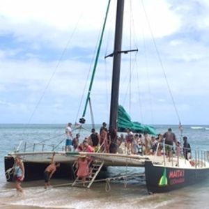 The Mai Tai Catamaran Cruise was my second experience. The departure location is on the beach between the Sheraton Waikiki and Halekulani, so it was convenient for me since I was staying at the Sheraton. The staff is cheerful, and it's a fun cruise!