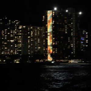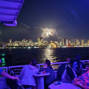 当初予約してた船がキャンセルになりそこから2回の変更があり、遅れて来たお客様待ってて出港が遅れて夕日のベストタイミングを逃すと言うのがありましたが、結果花火とワイキキの夜景の素晴らしさに涙でました。本当に綺麗。