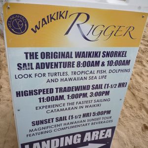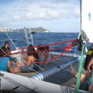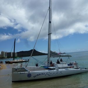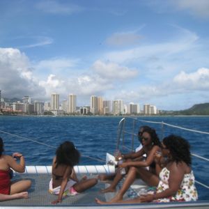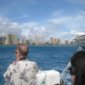 A 90 min sailing with a small catamaran sometimes tipped by the waves, a fun crew (you tip them) and a great view of Honolulu and Diamond Head. Well worth the money, plus your Keiki go for free and the crew is experienced to handle them.