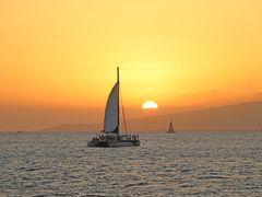 Set sail on a top-rated Oahu sunset cruise and cocktail sail aboard the Makani Catamaran. Enjoy a 2-hour adventure with two included drinks and great views of Diamond Head and Honolulu with convenient round-trip transportation from Waikiki available.