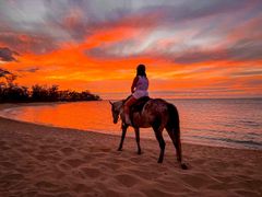 Experience an unforgettable 90-minute beach horseback ride at Hawaii Polo Trail Rides and watch a stunning sunset. Enjoy picturesque ocean views along their Oceanfront trail. Choose from small group or private rides for a personalized adventure.