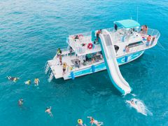 Experience a luxurious Na Pali sunset dinner cruise aboard the stable Holo Holo catamaran. Enjoy island-style cuisine, a premium open bar, champagne toast, and stunning views of sea cliffs, waterfalls, and marine life with a knowledgeable local crew.
