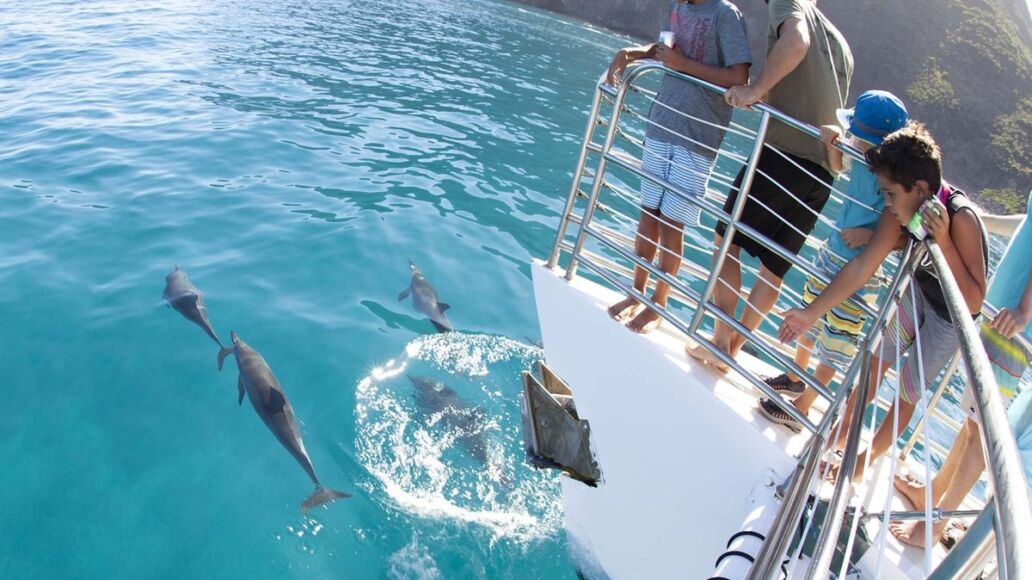 Spot dolphins, sea turtles, and rare seabirds on a Na Pali Coast boat tour. Wildlife encounters await on this unforgettable Kauai adventure.