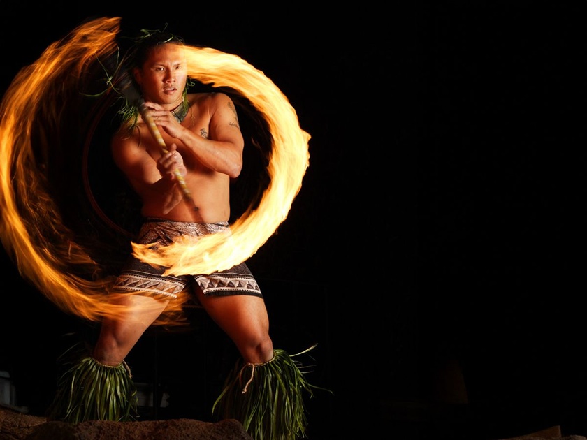 A dynamic cultural performance follows dinner: hula dances, Polynesian storytelling, and fire-dancer or knife shows. Smith presents its “Rhythm of Aloha” in a covered theater-style setting, while Kalamaku weaves theatrical storytelling into flames and poi ball artistry.