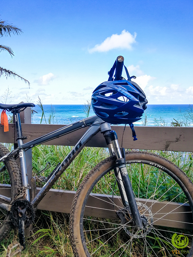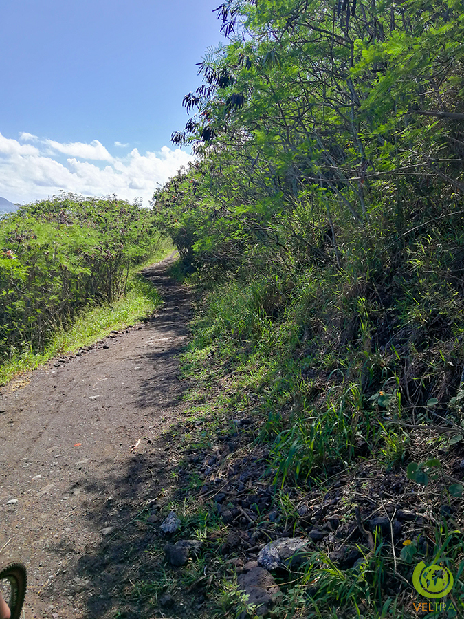 We were incredibly lucky on the day of our biking tour with mostly clear skies, with only a few clouds clinging to the nearby mountains to cover up the sun for us. The previous day, however, had rains heavy enough for the state to issue flash flood warnings, so the trails had plenty of mud puddles and the dirt was soft—with the consistency of peanut butter, as Keala described it.
