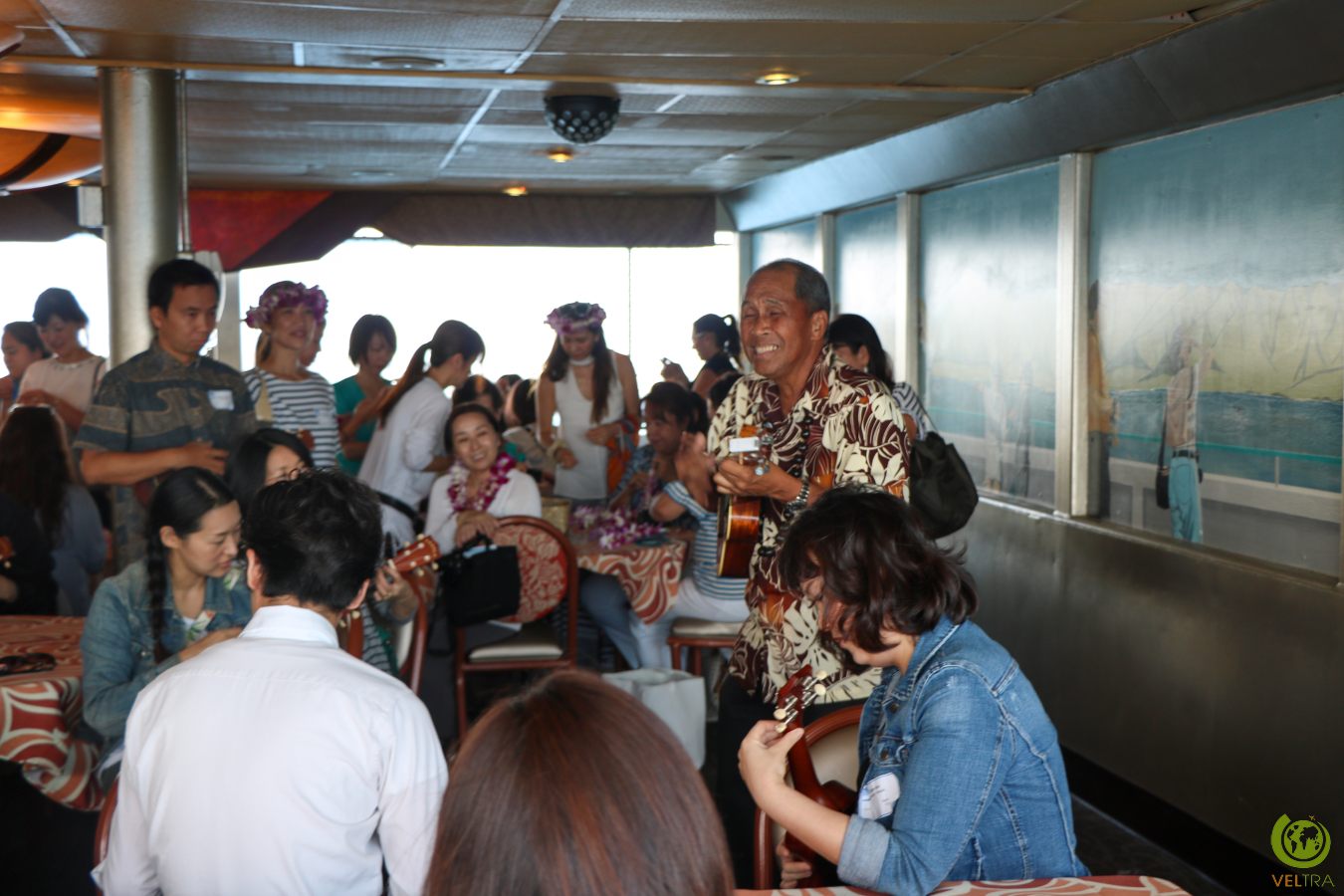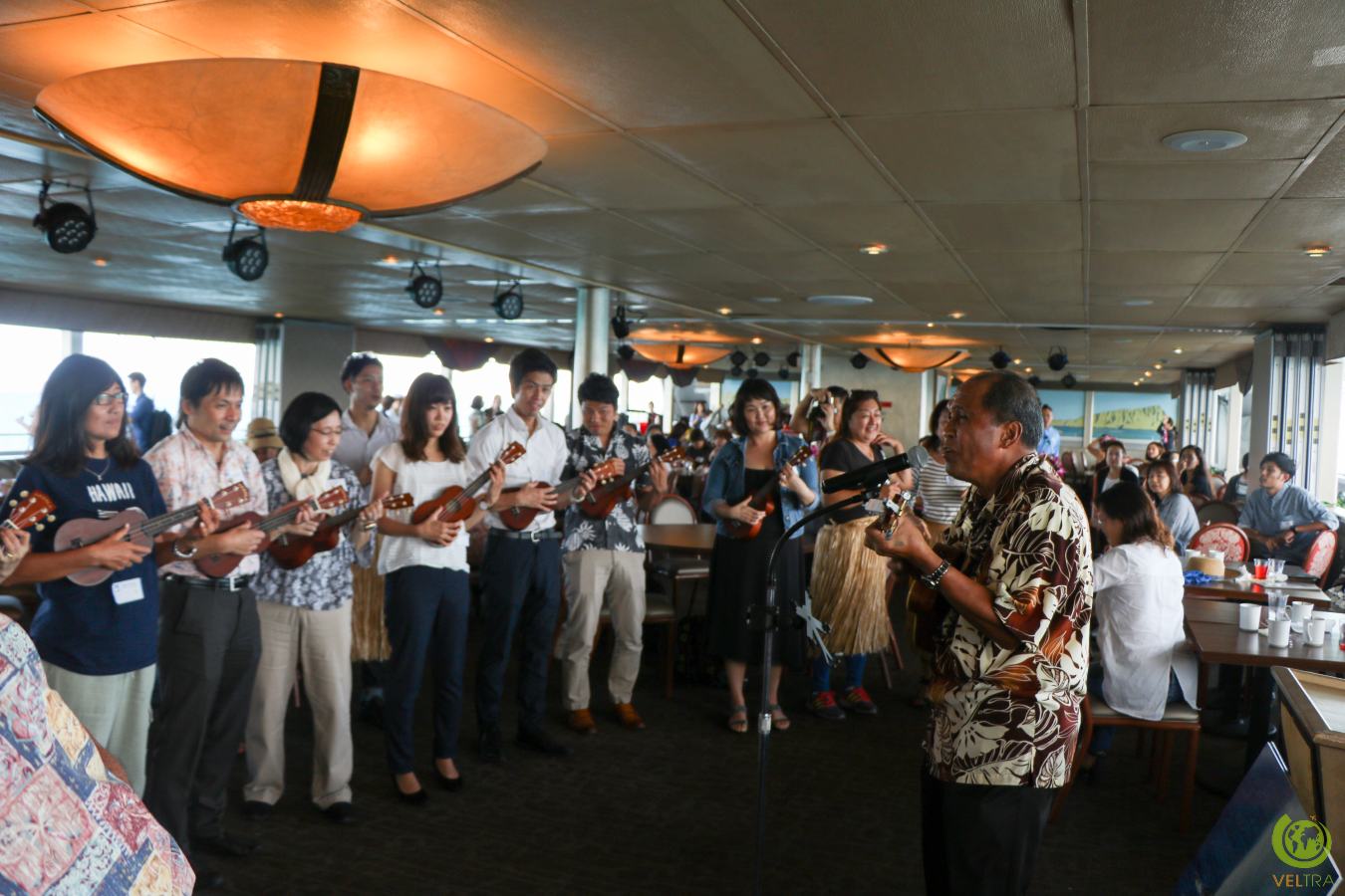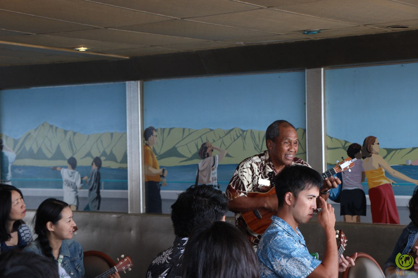 People could learn how to play the ukulele, dance hula, or string a flower haku lei (worn on the head rather than the shoulders).