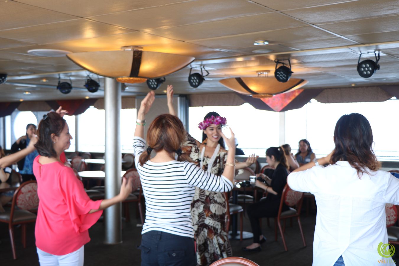The most fun part of the cruise was when all the people who took part in the activities then performed for the rest of the ship: the hula dancers dancing to the impromptu ukulele band while wearing the haku made by everyone else!