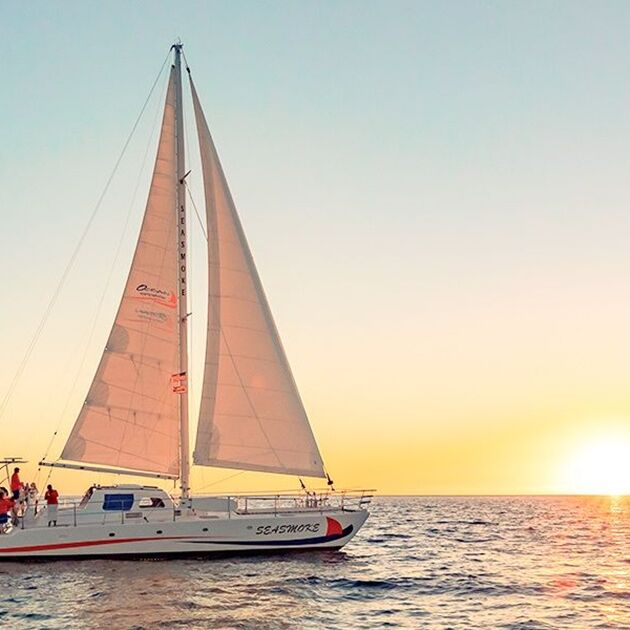 Catch a dreamy Kona sunset aboard the Honi Olani, a sleek 53‑ft sailing catamaran, with tropical drinks and ocean breezes setting the vibe. Enjoy complimentary drinks, \$1 beers, and \$2 cocktails as you soak in the sights and sounds of the coast. It’s the ultimate golden‑hour cruise — laid‑back, fun, and fresh every time!
